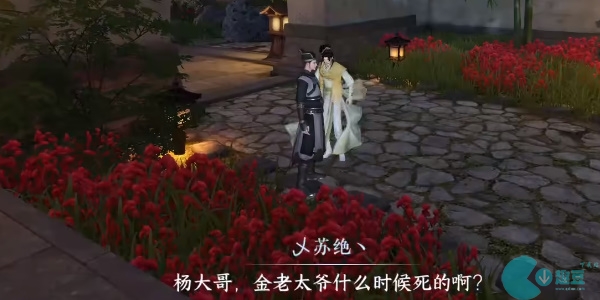 9、剧情结束后我们需要和白飞岩一起来开金府,到达门口之后我们需要试探白飞岩,我们再次和白飞岩进行对话;