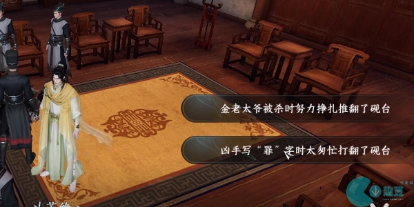 8、我们调查金老太爷的尸体,然后选择第一个选项,继续调查砚台我们选择第二个选项