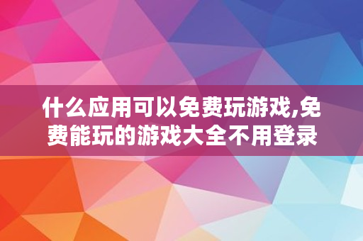 什么应用可以免费玩游戏,免费能玩的游戏大全不用登录
