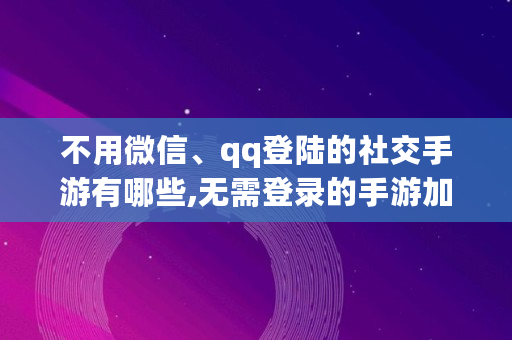 不用微信、qq登陆的社交手游有哪些,无需登录的手游加速器