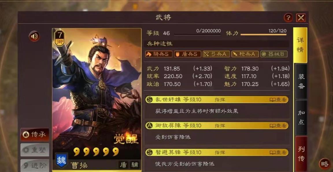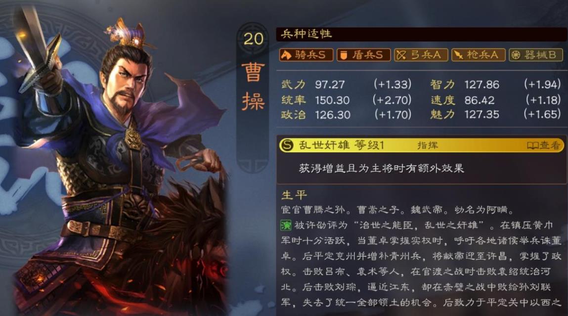 我们需要了解的是曹操这一角色的定位和基本特性,曹操不仅是魏国的创立者,也是一个兼具战术和策略的全能型角色。曹操拥有优越的政治和军事属性,擅长使用兵种包括但不限于骑兵和步兵。