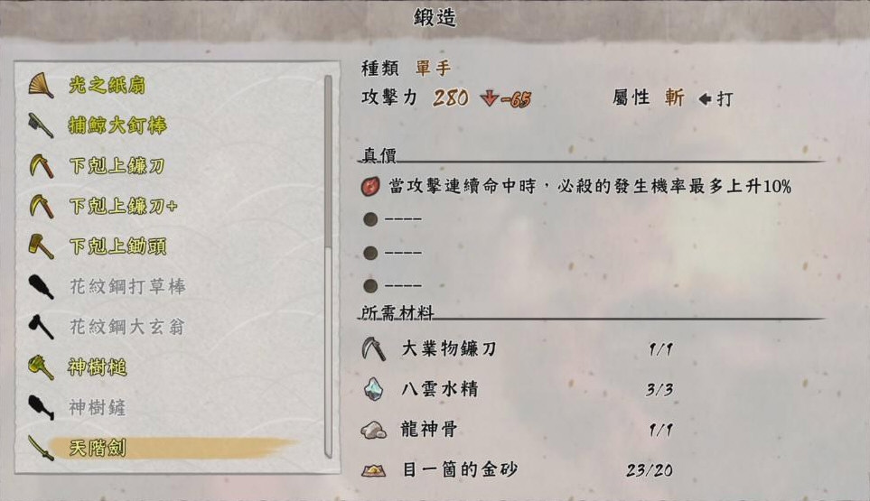 以上就是天穗之咲稻姬天阶剑怎么做的分享内容了,想了解更多《天穗之咲稻姬》相关资讯,请关注本站网游戏频道。