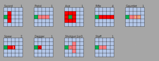 长剑:能够攻击前方三格的武器,攻击力比较平均。