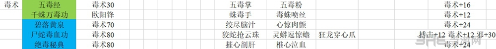 河洛群侠传毒术学习要求一览 毒术技能感悟需求表