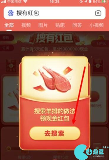 1、在活动页面中进入签到会弹出搜索界面,点击“去搜索”。