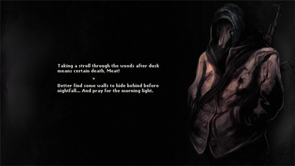 13、死后,天数会推进一天,褐衣男在一间地砖屋内醒来,他会遇到第一名与其沟通的NPC—狼人。