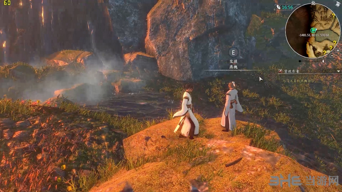 主角也需要沿着路,走出瀑布山洞,在下图位置找到孔金,坐标-1407.64,62.32,574.38附近,上前与东豪对话。
