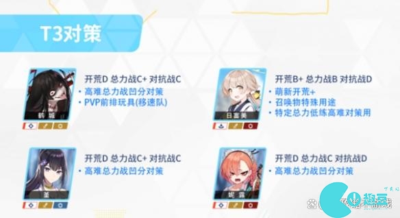 萌新开荒推荐角色,召唤物特殊用途和特定总力低练高难对策用。