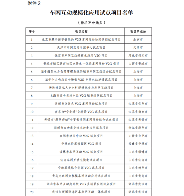 通知指出,经专家评审,列入首批车网互动规模化应用试点范围的为上海市等9个城市以及“北京市基于新型储能的V2G车网互动协同调控试点项目”等30个项目。