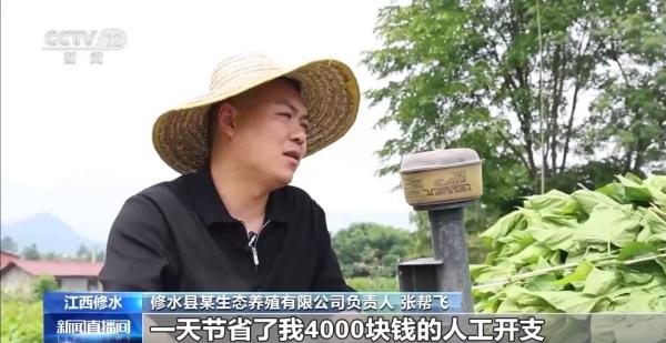 修水县某生态养殖有限公司负责人 张帮飞:不仅效率提升,经济支出也节省不少。每天能节省人工开支4000元。
