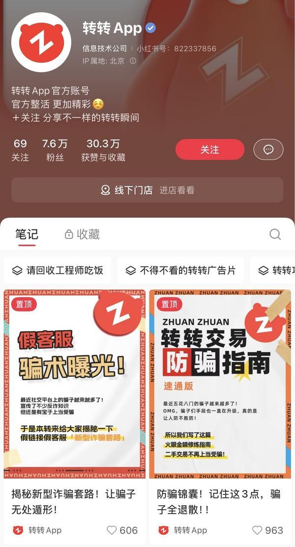 据转转内容运营负责人介绍,团队成员长期通过用户沟通、私信回复等方式,帮助用户甄别诈骗行为,直接避免上千位用户被骗;并有不少被帮助过的用户主动在评论区帮助其他用户,已然形成了良好的社区反诈氛围。同时,转转与小红书官方建立了针对“假客服”诈骗团伙的举报封禁机制,成功封禁上百个诈骗账号。