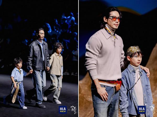 此次新品发布的动人一幕,是由多位父子共同呈现的温情同台。父子嘉宾与模特们身着海澜之家“山不在高”系列服饰,在T台上以自然真挚的互动,将“父爱如山”的厚重主题化作可感可触的时尚叙事。童装设计的活泼灵动与成人男装的沉稳包容相得益彰,父子并肩而行,步伐间流露的默契与温情,让整场大秀的情感层次更为丰富。这一创新编排,不仅深化了“山不在高”系列的人文内涵,更以细腻笔触映现出父爱的宽广与深厚。