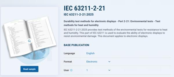 近日,国际电工委员会(IEC正式发布了IEC 63211-2-21:2025《电子显示耐久性试验方法 第2-21部分:环境试验 温度和湿度试验方法》国际标准。该国际标准由维信诺参股公司国显光电主导制定,是我国在电子显示耐久性领域首次主导的国际标准。