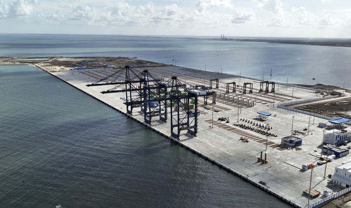 这是2023年12月1日在埃及亚历山大拍摄的由中国港湾工程有限责任公司承建的阿布基尔集装箱码头。新华社发(中国港湾工程有限责任公司供图