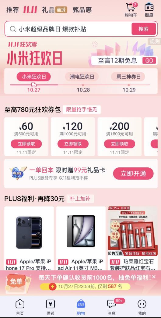 乐信副总裁阎姝表示:"随着消费市场的不断回暖,年轻消费者对高品质、高性价比商品的需求持续增长,预计商品成交额将迎来新高。2025年‘双11’大促,我们通过'优惠 分期'组合,提供丰富的商品选择和灵活的支付方式。在年轻人愿意为情绪价值消费的当下,我们将持续优化服务,满足年轻消费群体的多样化需求”