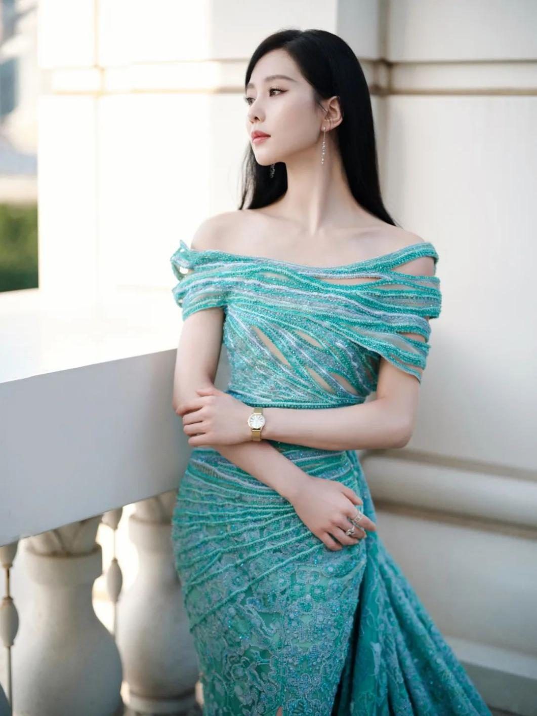 其实想要穿出节日感,也可以在配饰上做文章。像刘诗诗这身水蓝色礼服,就专门搭配了一枚金色的欧米茄碟飞系列MINI名典腕表,立刻起到画龙点睛的作用,光影在金色表壳和镶钻表圈上流转,华丽得恰到好处。