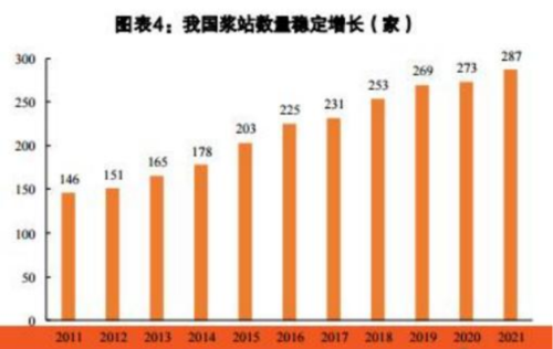 血制品是一种用于治疗及被动免疫的生物制品 ,其为源自人类血液或血浆的治疗产品 ,如人血白蛋白 、人免疫球蛋白 、人凝血因子等 ,一般通过健康人的血浆或特异免疫人的血浆分离 、提纯制成 。血浆是血制品生产最核心的原材料 ,采浆量决定了血液制品的产量 ,也决定了行业增速 。受到政策监管 、 民众观念等多重因素的限制 ,我国采浆量及血制品的增长并非易事 ,血制品依然具有资源属性 。国内总采浆量在相当长一段时间内处于震荡状态 ,2014 年后出现一波持续的增长,2020年受疫情影响采浆出现下滑。2021年各地新建浆站审批放开 ,推动行业供给增加。