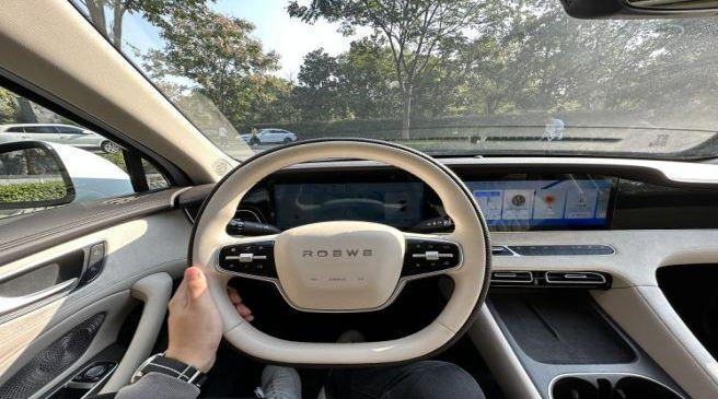 值得一提的是,这次我还试驾到了荣威D7的EV版本,这台EV版本的内饰是浅色,看着会更加清新一些,我个人比较喜欢这套浅色的设计风格。