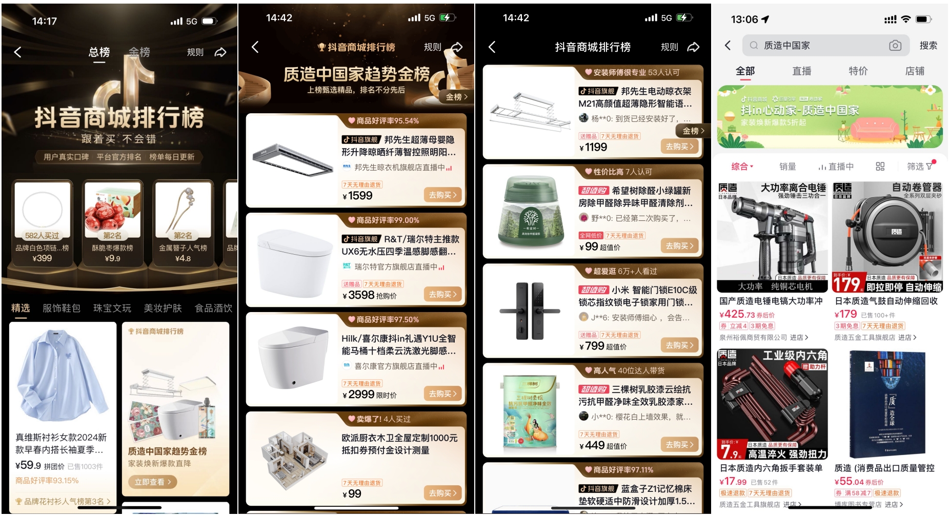 值得一提的是,「抖in心动家」特别打造「质造中国家趋势金榜」,家具家装垂类品牌新品、爆品均有机会入选,在更大的流量场域获得曝光,让产品触达海量机会人群,有效深化了品牌的「质造」形象,以品质实力塑造企业长期价值。