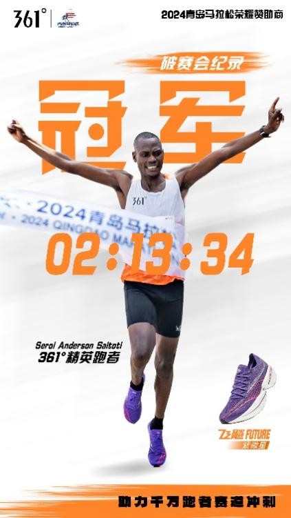 在本届比赛中,361°精英跑者Seroi Anderson Saitoti以2小时13分34秒斩获全程男子组冠军并刷新赛会纪录,361°精英跑者王佳浩上脚飞燃3以2小时15分29秒获得马拉松男子组国内冠军。