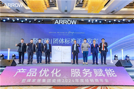 2023年,在行业掀起轻纹主义热潮的时代,箭牌瓷砖率先联合中国陶瓷工业协会起草制定并发布《轻纹砖》团体标准,重新定义轻纹砖标准,规范轻纹砖品类健康发展,构建行业壁垒,正向指导产品研发制造。