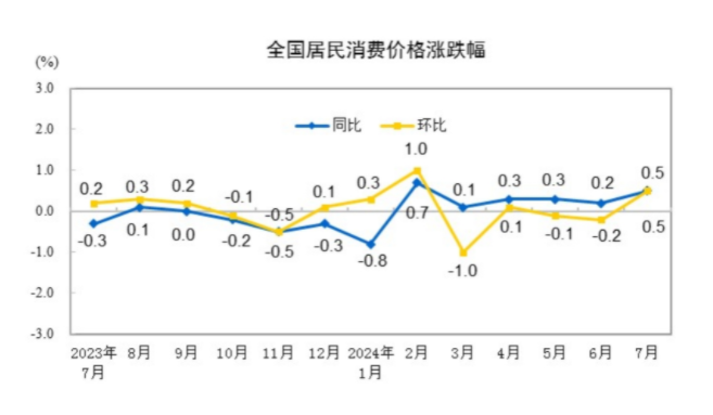 国家统计局:7月份CPI同比上涨0.5%