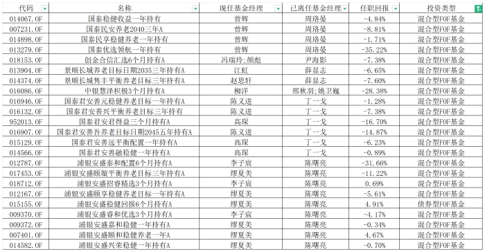 表:8月份以来23只FOF变更基金经理来源:Wind,界面新闻整理