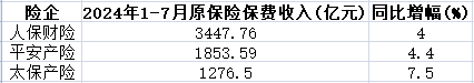 截至7月31日,中国人保、中国平安和中国太保3家公司的产、寿险业务取得亮眼成绩。