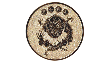 此枚由广西民族博物馆联合博丰文创设计的瑶族红缎龙纹师公袍镀金纪念章,仔细端详,纪念章上的每一个细节,龙纹的线条流畅而有力,展现出了瑶族人民对力量与勇气的崇尚,与金色的光泽相互映衬,营造出一种华丽而神秘的氛围,金色的镀层,不仅增添了华丽之感,更仿佛赋予了龙纹新的生命。