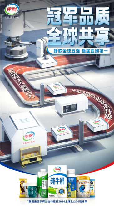 在荷兰合作银行最新发布的“2024全球乳业20强”榜单中,伊利蝉联全球乳业五强、连续11年稳居亚洲乳业第一,再次成为唯一进入全球五强的中国乳企。