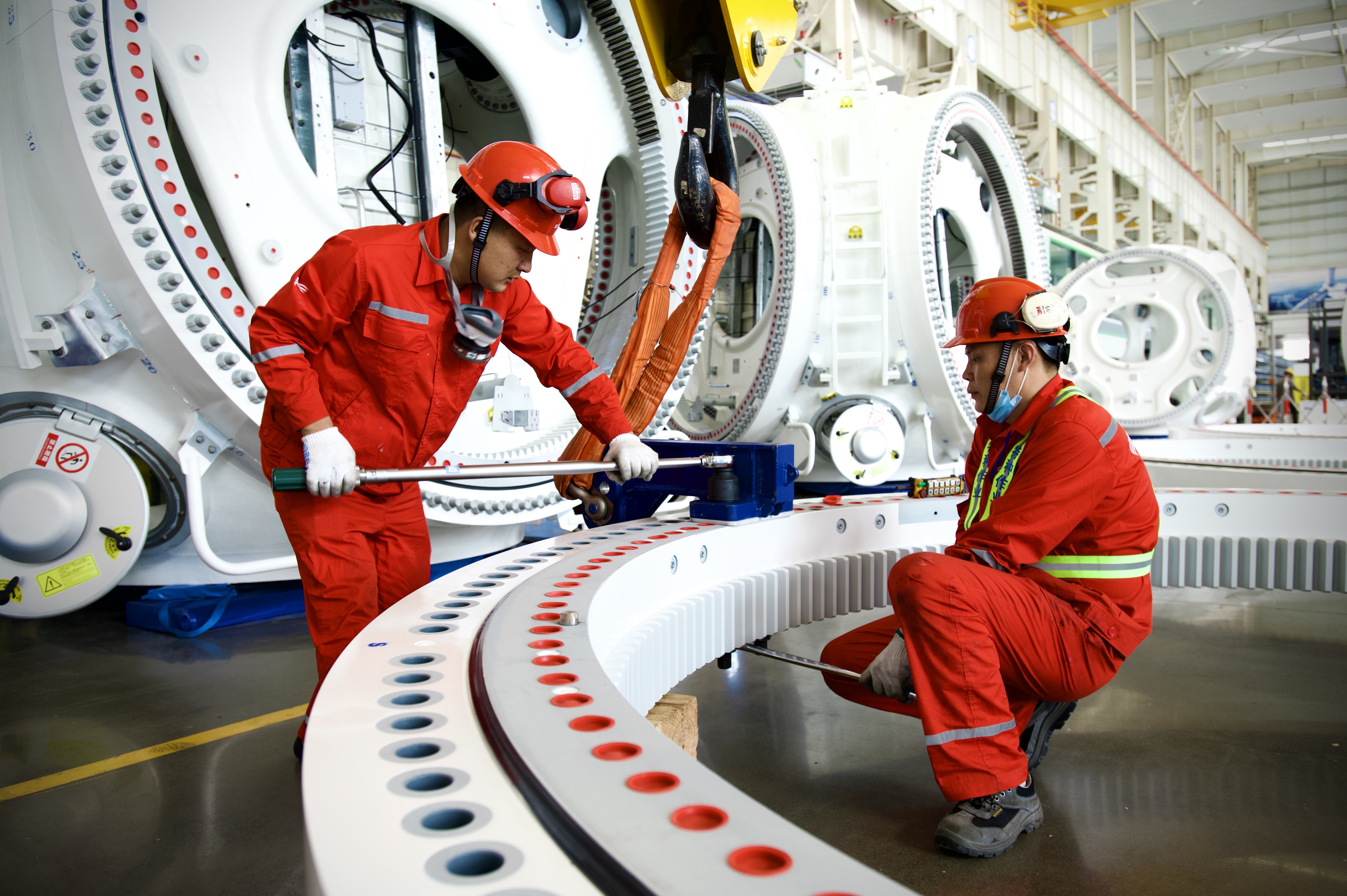 (金风科技达坂城零碳数字化工厂工人正在作业