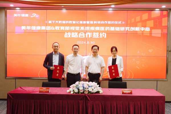8月30日,美年健康集团达成两大重要科研合作签约。美年健康集团将与教育部视觉系统疾病医药基础研究创新中心携手,深化国内视觉系统疾病及相关慢病筛检及数智化管理体系,进一步推动中国眼健康事业的发展;与此同时,中关村美年健康产业研究院也将与上海交通大学公共卫生学院在数字化主动健康管理、智能化体检报告、器官衰老时钟等方向开展科研合作,深入挖掘健康体检大数据,推动基于主动健康的健康管理发展,加强健康老龄化研究,进一步提升健康体检的公信力。