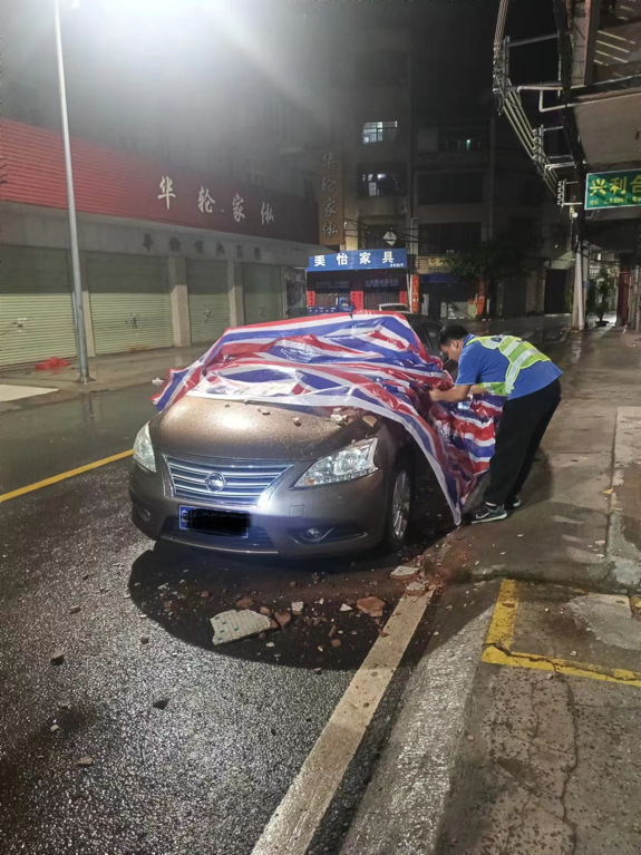 9月6日晚上,中国太保广东茂名共享服务中心理赔员谭汉莉接到客户报案称外墙掉落砸中了自己车辆。暴风雨中,谭汉莉第一时间抵达事故现场进行查勘,以专业理赔技能,仔细勘察现场情况,详细记录车辆受损程度。与此同时,为避免车辆进水,找来篷布为客户爱车遮挡受损部位,客户连连点赞太保服务高效暖心。