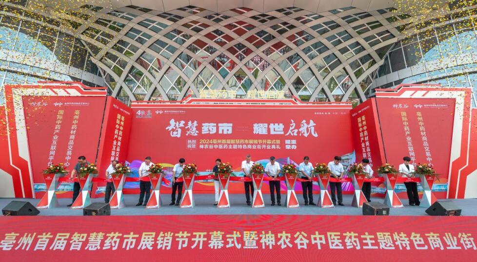 据介绍,2024首届亳州智慧药市展销节由三大核心活动组成。包括2024亳州首届智慧药市展销节开幕式暨神农谷中医药主题特色商业街开业典礼,2024亳州首届智慧药市道地药材推介会——“贵药出山,厚积‘亳’发”贵州中药材产销合作交流会,以及2024首届智慧药市国潮中医药养生集市。活动内容丰富,形式多样,吸引全国各地嘉宾参观、交流、洽谈。