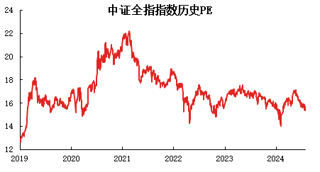 业内人士分析认为,经过两年的调整,A股估值已处于历史相对低位。当前,中证全指指数PE(TTM为15.7,处于2020年以来的9.8%分位数。理性来看,当下A股下行风险较小,但估值修复空间大,中长期性价比凸显。