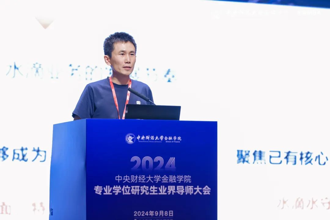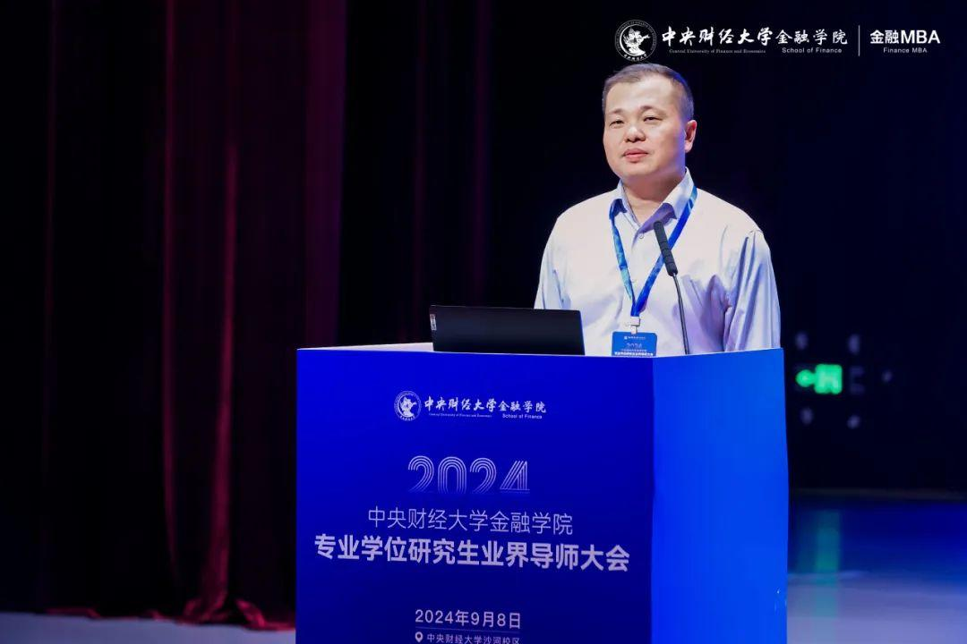开幕仪式环节中,中央财经大学金融学院院长张学勇发表致辞。他表示,专业学位研究生的培养特别注重理论联系实际,需紧密对接金融市场的实际需求,持续深化产教融合的深度和广度。希望此次业界导师大会的召开,能够汇聚各方智慧与力量,探索出一条全面提高金融专业学位硕士培养质量的新路径,为国家的金融事业繁荣发展贡献更加强劲的人才动力。