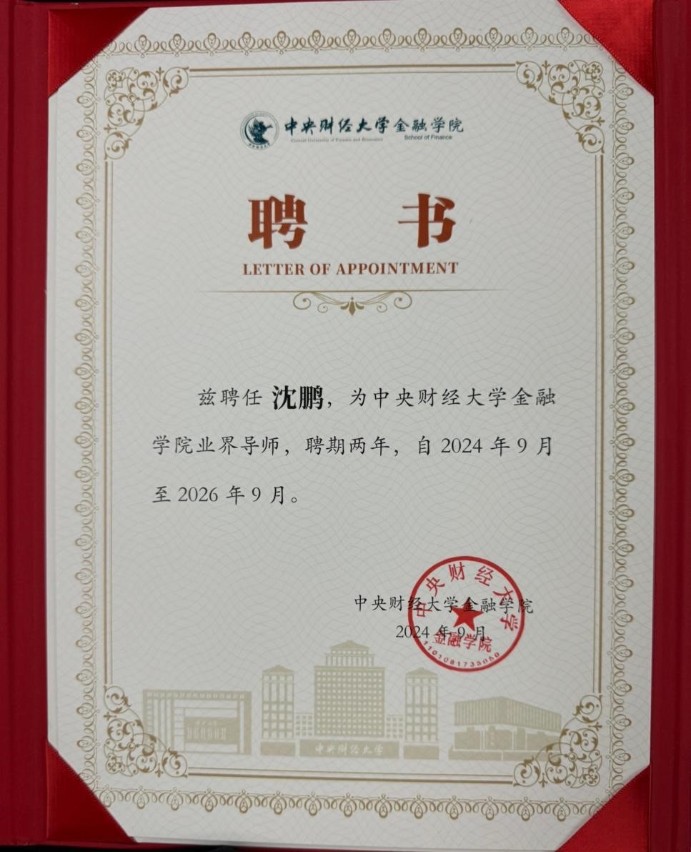 图:沈鹏获聘担任中央财经大学金融学院业界导师