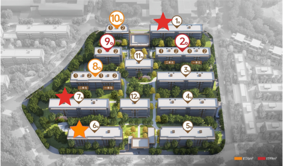 其中,6号楼位于组团的主大门左侧,为建面约176㎡户型,主视野朝南。