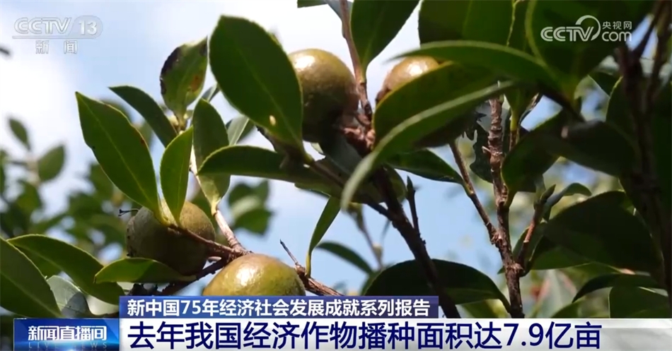 2023年,我国经济作物播种面积达到7.9亿亩,比1949年增长了2.7倍;全国蔬菜面积达到3.4亿亩,产量8.3亿吨;全国果园面积1.9亿亩,园林水果产量2.4亿吨,分别比1978年增长6.7倍和35.5倍。蔬菜水果品种琳琅满目,品质不断提升。