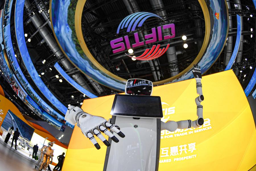 9月12日在2024年服贸会国家会议中心会场拍摄的机器人。新华社记者 陈钟昊 摄