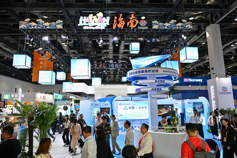 这是9月12日在国家会议中心拍摄的2024年服贸会主宾省海南展台。新华社记者 李鑫 摄
