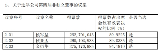 近九成股东支持侯亚孟当选董事