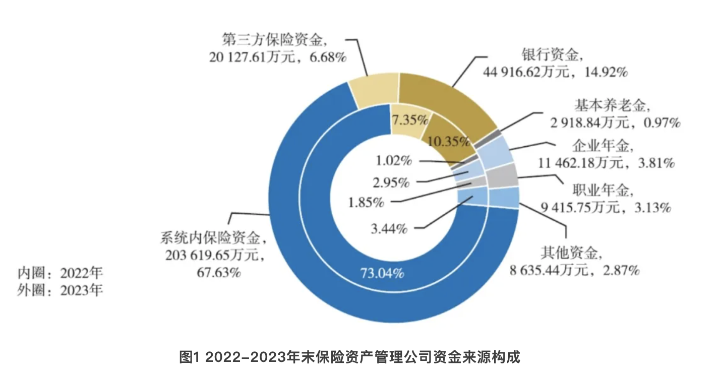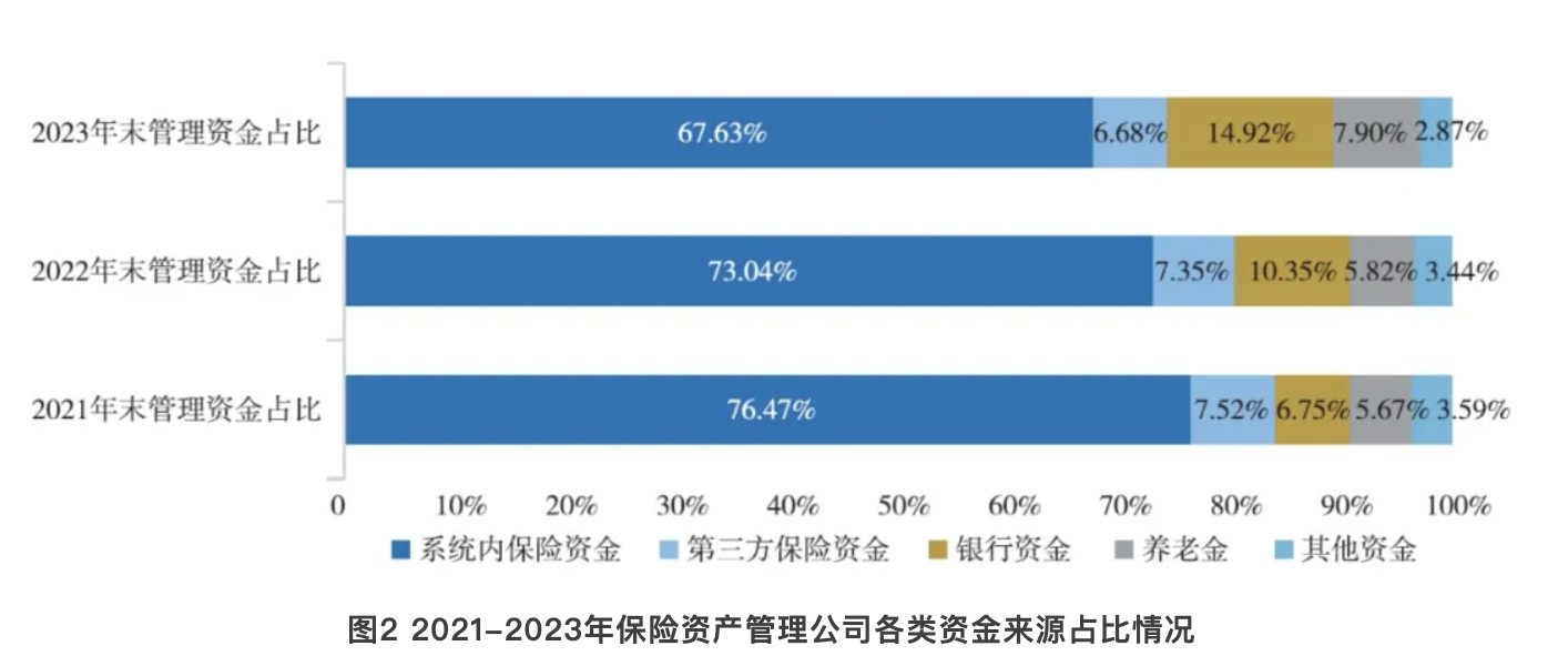 系统内保险资金占比有所下降,23家公司第三方资金规模占比超20%
