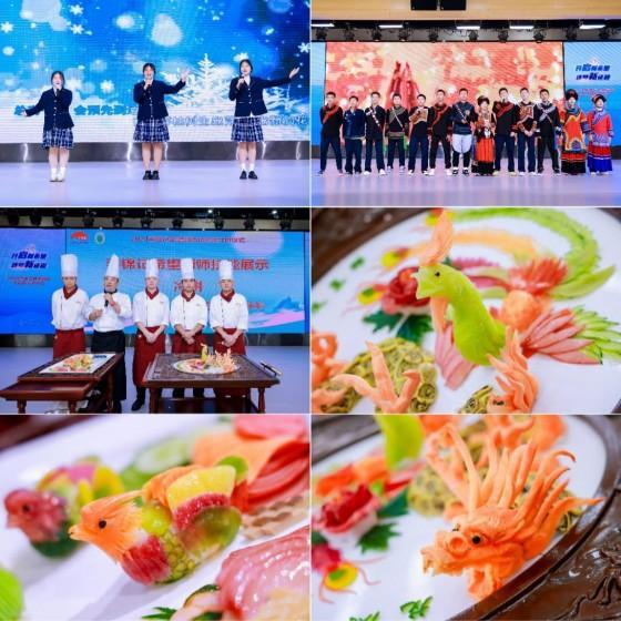 接下来的文艺表演与技能展示环节,更是将整场开班仪式推向了高潮。高一新生带来了一首《我会等》,唱出了在成长路上每个人都有等待机遇、等待梦想成真的时候,但只要朝着目标坚持不懈,最终都会迎来属于自己的美好未来。高一、高二的大凉山同学合唱的《别知己》,表达了与朋友间的深厚友谊,让在场所有人共同见证这份跨越地域与文化的情谊,歌词中加入的彝语,赋予了这首歌别样的风情。而高二、高三学长们的冷拼技能展示,则是将精湛的技艺和独具创意的巧思完美融合,精美的冷拼作品让人目不暇接,充分展现了他们扎实的烹饪功底和对美的追求,也进一步展示了李锦记希望厨师项目的教学成果。