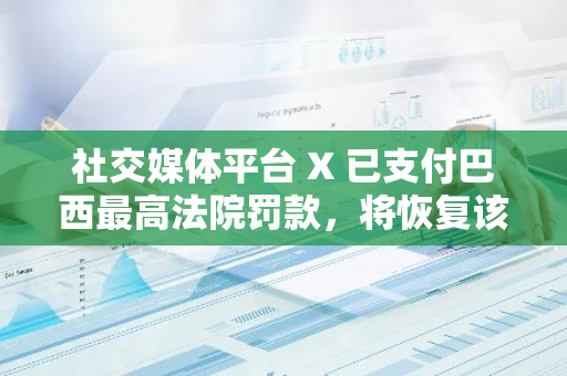 社交媒体平台 X 已支付巴西最高法院罚款,将恢复该国服务 更新时间:2024-10-05 13:13:35 •阅读 0 据金十报道,马斯克旗下社交媒体平台 X 已支付了巴西最高法院的罚款,公司将提交新的请求,恢复在该国的服务。