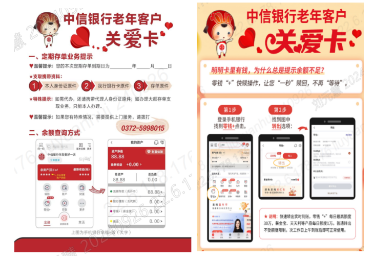 以中信银行郑州分行为例,针对部分老年客户不熟悉手机银行操作和常见问询,组织一线人员巧花心思,制作定期存单、“零钱 ”余额查询等老年“关爱卡”,让手机银行操作更清晰、更便捷;针对老年客户近期咨询较多的“个人外汇跨境汇款”,快速制作推出“个人外汇跨境汇款手机银行办理流程”一页通,搭建“高频问询—快速制作—推广应用”模式,以温馨微提示、贴心关爱卡,帮助老年客户跨越“数字鸿沟”。
