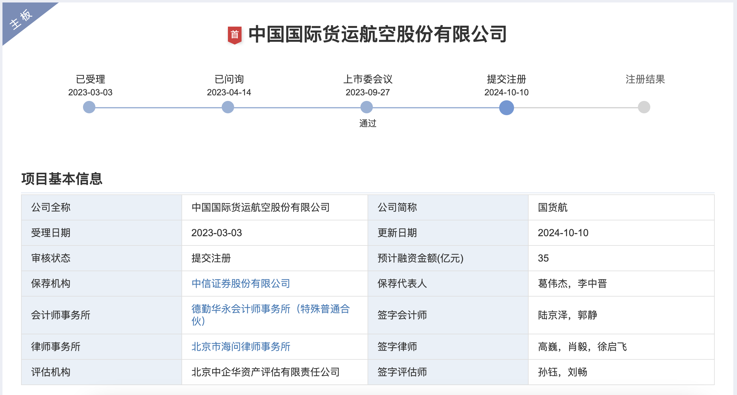全面注册制后,国货航IPO于2023年3月平移并获深交所受理;2023年4月,国货航收到首轮审核问询函,经历2轮问询后,2023年9月27日过会。时至今日递交IPO注册申请,国货航的等候时间已超1年。