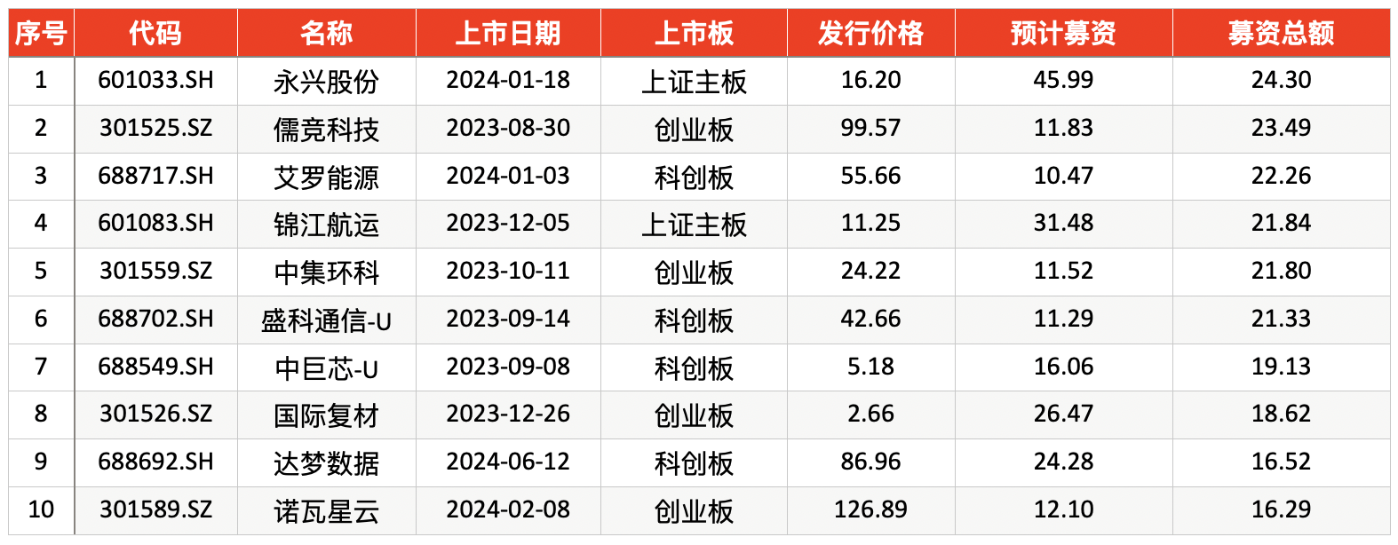 827新政以来前十大规模IPO