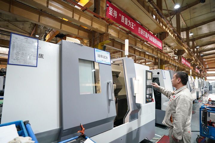 通用技术集团沈阳机床的工人在车间工作(2023年2月14日摄。新华社记者 潘昱龙 摄