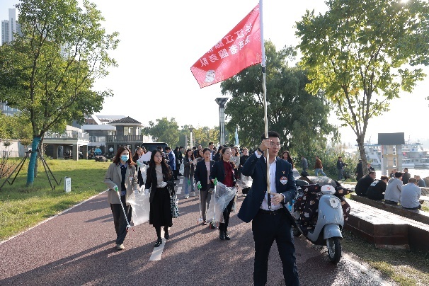 “在那!我看到江豚啦。”看到江豚跃出水面的身影,志愿者惊喜地喊到。秋日午后的长江畔,阳光明媚、视野开阔,志愿者们沿江岸远眺,大家边看边走,随手将岸边的垃圾拾到携带的垃圾袋中,用实际行动“守护好一江碧水”。